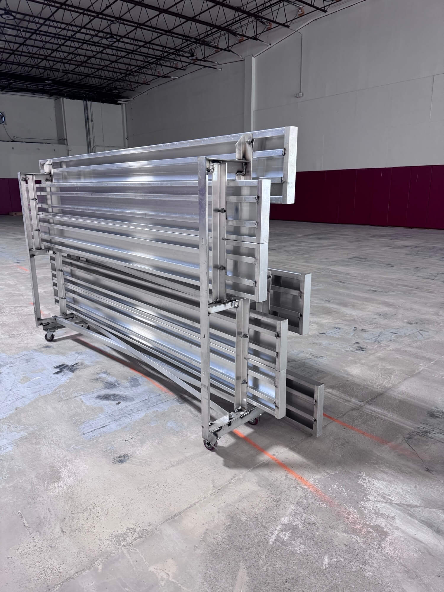 These 3 and 4 Row Tip n Roll Aluminum Bleachers can easily accommodate 15 to 64 guests/patrons at your event or location. With these bleachers being 30 feet or less in height, there is no safety fence requirement, which makes installation a breeze. Manufactured out of aluminum, these indoor or outdoor bleachers have a 6″ rise, have a 2″ x 10″ floor plank, and have a 2″ x 12″ seat plank for guest/patron comfort.